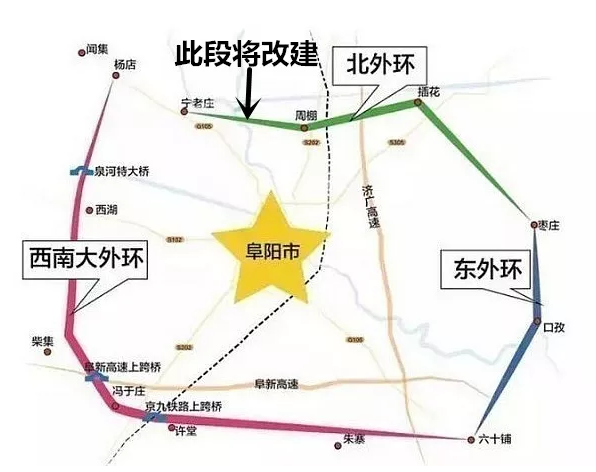 阜阳外环包括西南大外环、北外环、东外环。