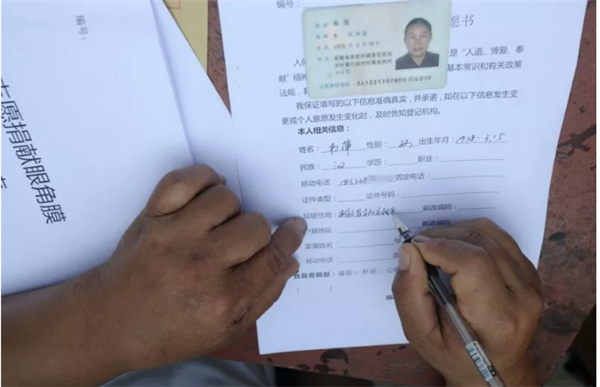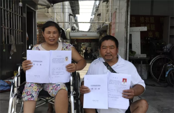 7月27日,这个普普通通的日子,注定会令倪国林、韦萍终生难忘▼这一天,这对残疾人夫妇在颍州区红十字会工作人员送来的《中国遗体捐献自愿表》《器官捐献自愿表》《眼角膜捐献自愿表》 上郑重地签下了